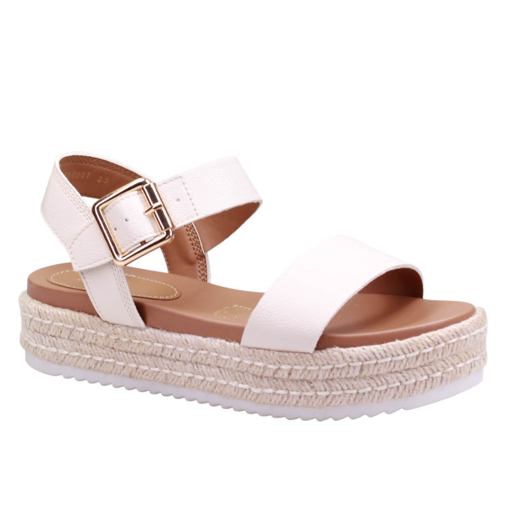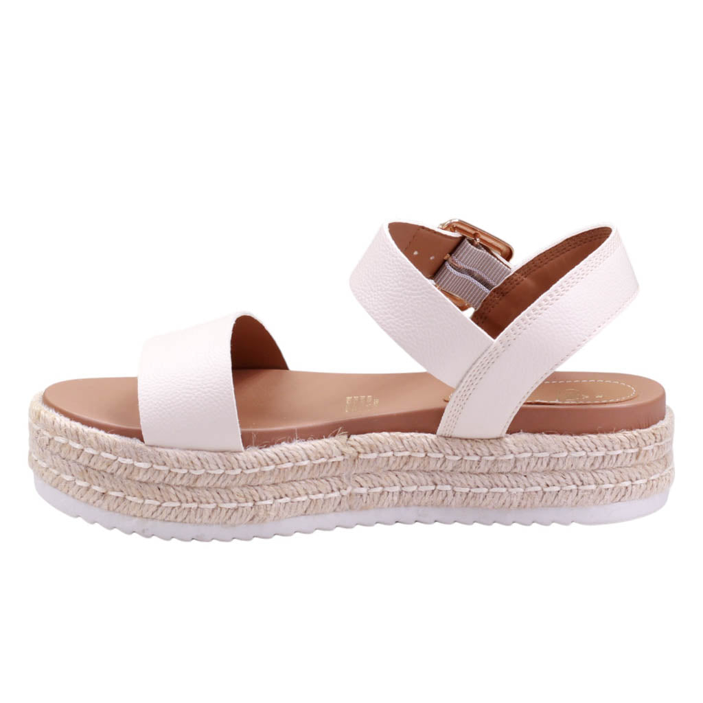 Sandalia para dama marca Gillio en color hueso. El Modelo de plataforma corrida con tejido ofrece un mayor soporte y comodidad mientras caminas. La plantilla de confort y el ajuste al tobillo garantizan una experiencia de uso sin igual. Con esta plataforma, podrás caminar con confianza y estilo.
