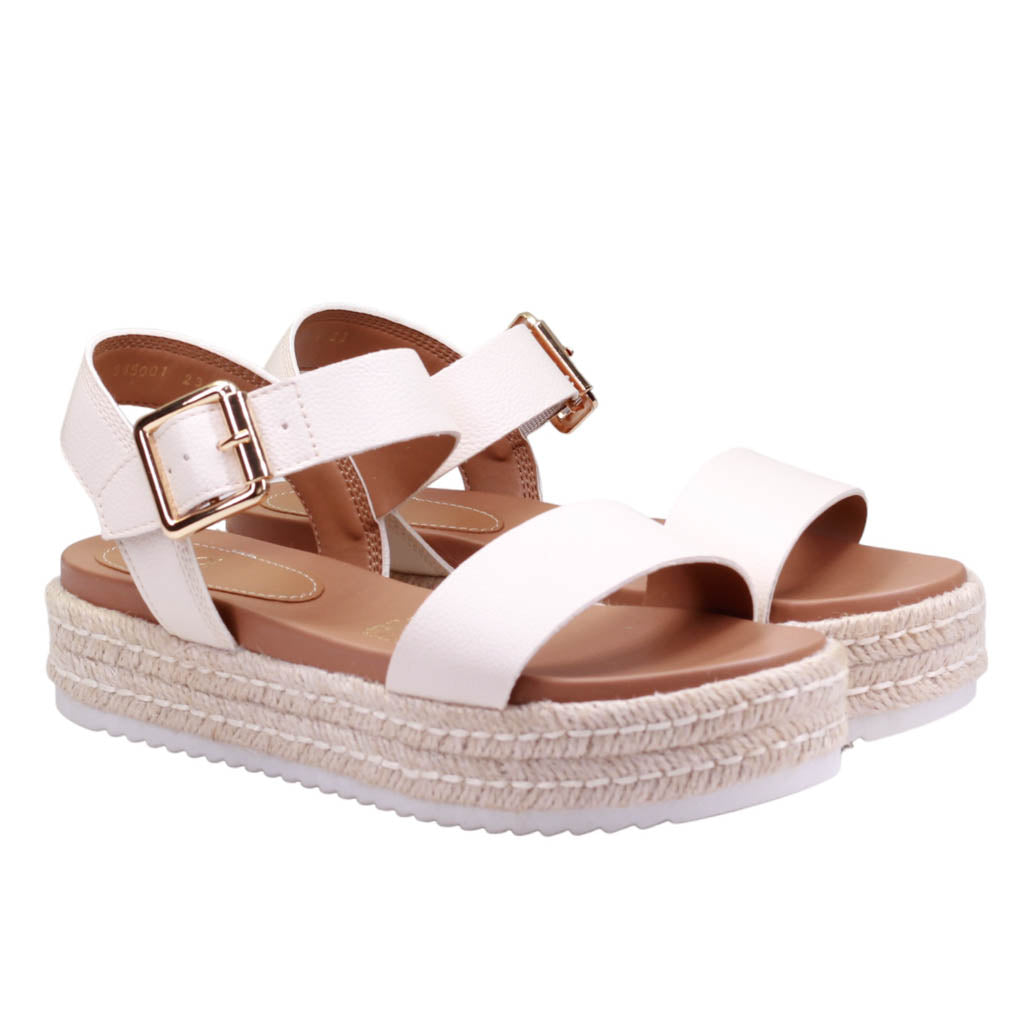 Sandalias cómodas, se ven muy bien. El color es como un beige muy sutil casi blanco, pero no es blanco.