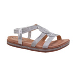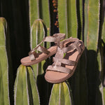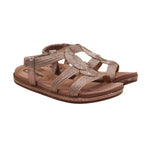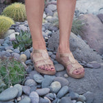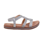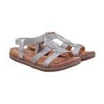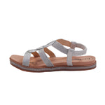 Sandalia para dama marca Nómadas en colores negro, bronce y plata. Es una sandalia de Confort que te proporciona una altura de 2,00 cm con un calce perfecto y te brindará comodidad y estilo en cada paso. Cuenta con un acabado en adornos circulares.