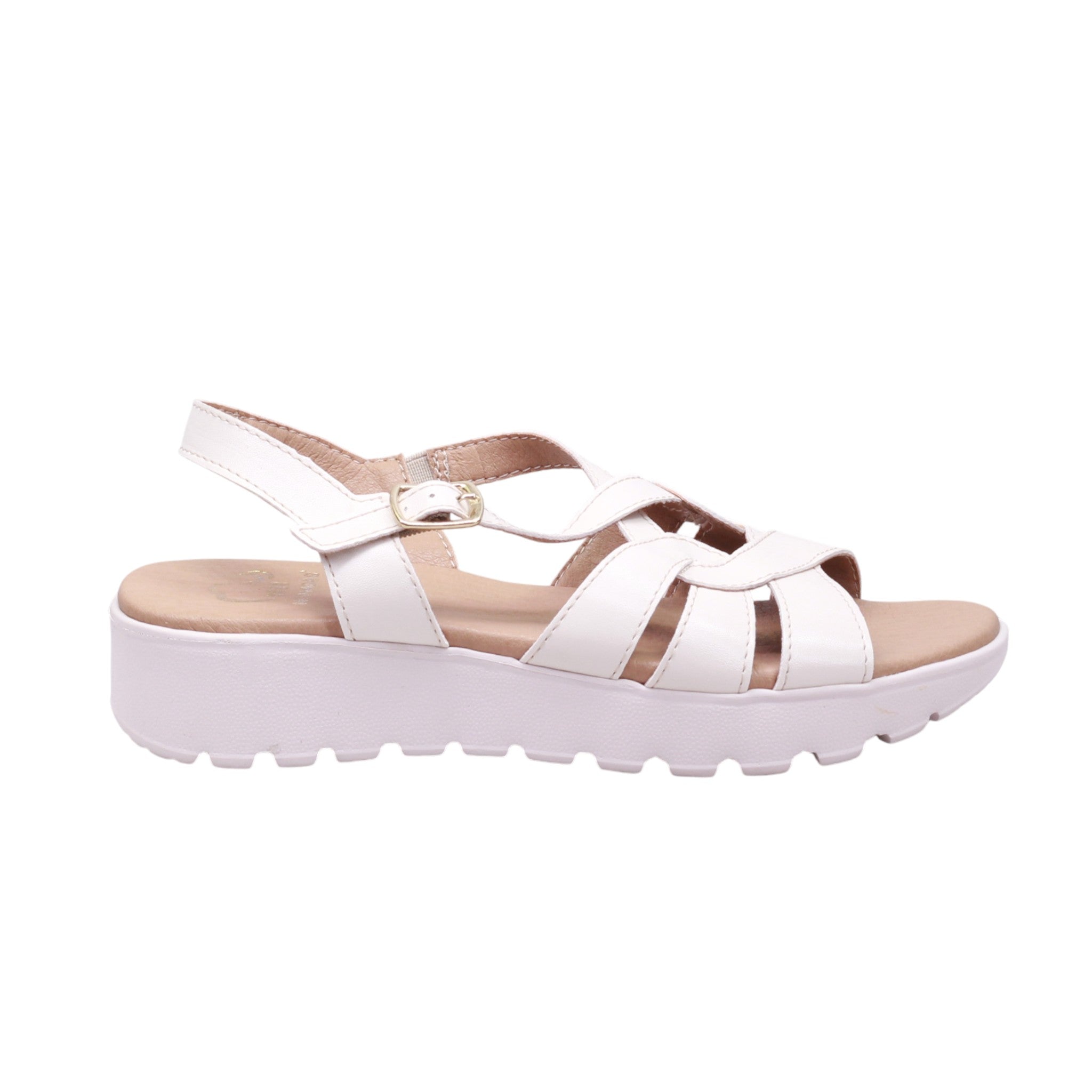 Sandalia para dama de plataforma ancha y plantilla de confort con tiras en cruce