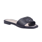 Sandalia tipo slide con adorno rectangular y acabado elegante