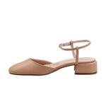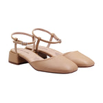 Calzado de metedera con punta semi cuadrada, tiras al tobillo y tacón bajo