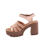 Calzado para dama de cuatro tiras y tacón y plataformas anchas