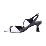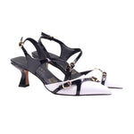La tira trasera ajustable con hebilla permite un calce personalizado, mientras que el tacón medio de 5.5 cm —ligeramente acampanado en la base— ofrece estabilidad sin sacrificar estilo. Ideal para ocasiones formales, presentaciones o looks ejecutivos que requieren presencia y detalle.