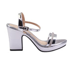 Zapatilla para dama marca Francis en color plata. Brilla con cada paso gracias a esta sandalia de corte y forro artificial en tono metálico. Su tacón ancho de 8.5 cm y plataforma de 1.5 cm ofrecen altura con estabilidad, ideal para eventos largos. El diseño incluye una correa frontal decorada con pedrería que aporta elegancia y sofisticación, mientras que la pulsera ajustable al tobillo con hebilla garantiza un ajuste seguro. Perfecta para bodas, fiestas o cualquier ocasión especial donde quieras destacar.