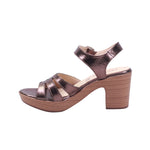 Sandalia de piel para dama con tacón vista madera y tiras lisas