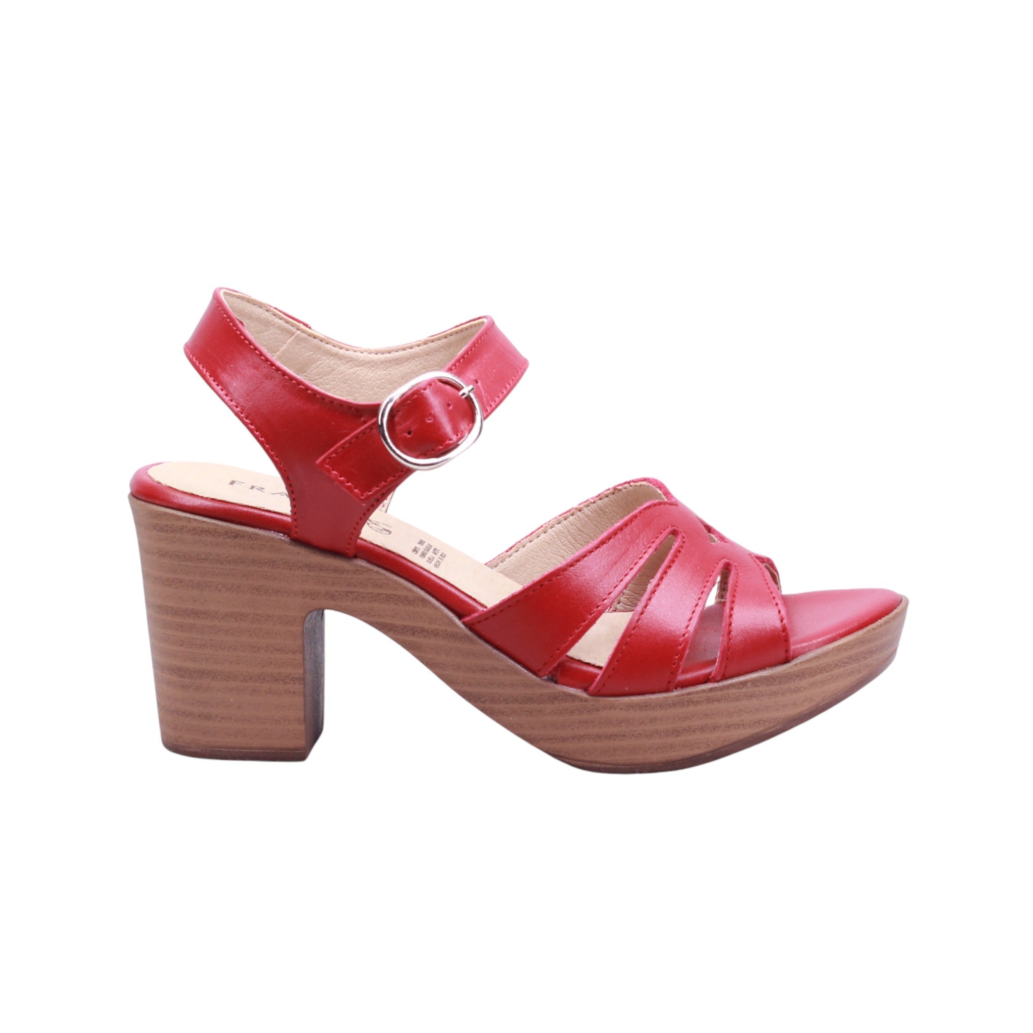 Calzado para dama marca Francis en color imán y rojo. Sandalia para dama con corte en piel de ternera y forro en piel coagulada, diseñada para ofrecer estilo y comodidad en cada paso. Su tacón alto de 7.0 cm con vista madera aporta elegancia y estabilidad, ideal para looks casuales o semiformales. El diseño incluye tiras frontales lisas en tono neutro, que realzan la silueta con un acabado sofisticado. La plantilla acolchada brinda confort prolongado, mientras que el ajuste al tobillo con hebilla metálica asegura firmeza y soporte. Perfecta como sandalia de piel con tacón alto, pensada para mujeres que buscan moda, calidad y versatilidad en su calzado.