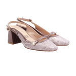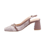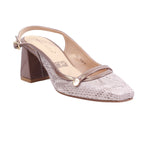 Modelo para dama marca Macada en color cobra. Modelo destalonado de corte artificial y forro de piel, con diseño tipo slingback que combina elegancia y carácter. La vista tipo serpiente en tonos neutros aporta textura y sofisticación, ideal para destacar en looks formales o casuales con estilo. La punta semi-cuadrada equilibra modernidad y comodidad, mientras que el tacón de 6.00 cm en acabado brillante ofrece altura con excelente estabilidad. La tira trasera con hebilla metálica permite un ajuste seguro, y el detalle decorativo en el empeine añade un toque refinado. El interior claro y la suela firme completan un modelo versátil y llamativo.