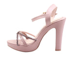 Zapatilla para dama marca Alfonso Coronna en color ostra. Este modelo de piel artificial combina altura y sofisticación en cada paso. Su diseño incluye una plataforma que suaviza el impacto del tacón alto, ofreciendo mayor estabilidad sin sacrificar estilo. Las tiras delanteras presentan una textura decorativa con pequeños destellos brillantes que capturan la luz y añaden un toque glamuroso. El contorno de las tiras está cuidadosamente delineado para resaltar la forma del pie, mientras que la correa con hebilla ajustable en el tobillo asegura un ajuste firme y elegante. Perfecta para eventos nocturnos o looks que exigen presencia.