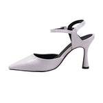 Zapatilla de punta con acabado en charol y ajuste al tobillo