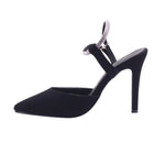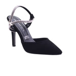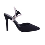 Zapatilla para dama marca Glynn en color negro. Diseño glamoroso con estructura refinada. Esta zapatilla está elaborada en piel artificial tanto en el corte como en el forro, con acabado tipo gamuza que aporta textura suave y apariencia sofisticada. La silueta de punta fina estiliza el pie con elegancia, mientras el tacón tipo stiletto de 9.5 cm eleva la figura con firmeza y actitud.