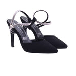 Zapatilla de punta fina con tiras decorativas y tacón alto