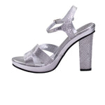 Zapatilla de tacón alto, ajuste al tobillo y tiras en cruce