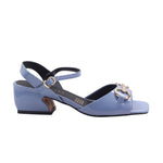 Zapatilla de tacón bajo ancho con adorno en el corte