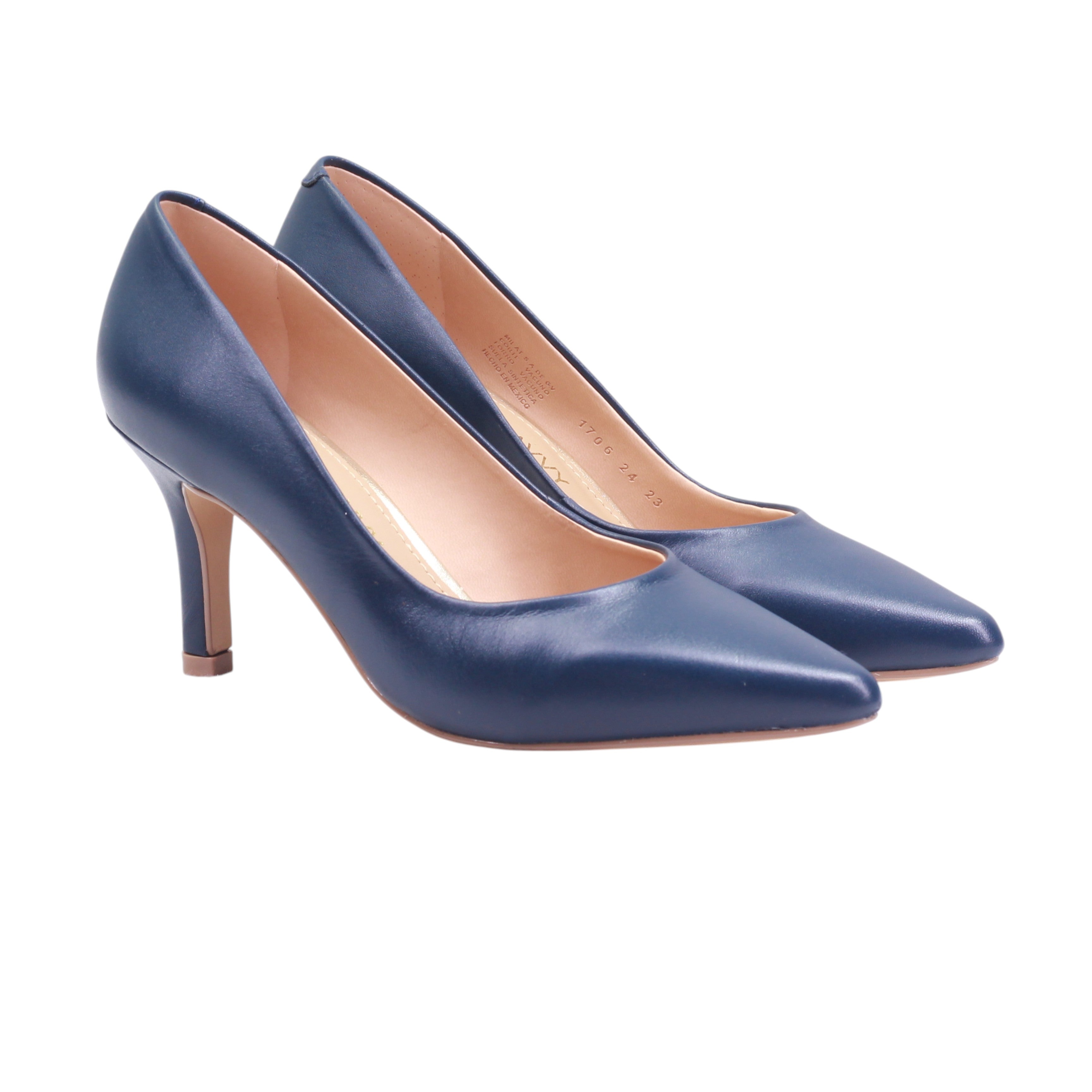 Zapatilla para dama marca Savy en colores marino y rojo. Modelo cerrado de corte y forro vacuno, con diseño clásico tipo pump que combina elegancia y comodidad. Su acabado mate en tono azul marino aporta sobriedad y versatilidad, ideal para entornos profesionales o eventos formales. La punta fina estiliza el pie y alarga visualmente la pierna, mientras que el tacón delgado de 7.00 cm ofrece una elevación equilibrada con buena estabilidad. El interior en tono claro genera contraste y confort, y la suela firme garantiza seguridad al caminar. Un modelo refinado para quienes buscan estilo atemporal con presencia.