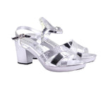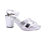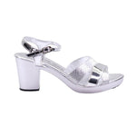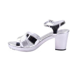 Zapatilla para dama de tacón ancho con tiras en espejo y grabado