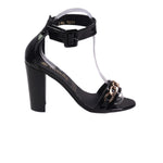 Zapatilla para dama marca Rivedi en color negro. Modelo super llamativo gracias a su adorno en eslabones dorados. Cuenta con un tacón cuadrado ancho para mejor equilibrio y plantilla cómoda para estar cómoda paso a paso.