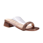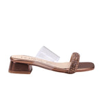 Zapatilla para dama marca Francis en colores plata y bronce. Este modelo de tacón de 3.00 cm de altura te proporcionará comodidad y estilo en cada paso. La tira transparente y la tira adornada con pedrería artificial le dan un toque elegante y sofisticado a tu look. Perfecto para cualquier ocasión, marcarás tendencia con este zapato.