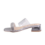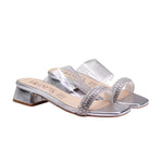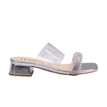 Zapatilla para dama de tira con pedrería artificial y transparente