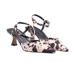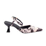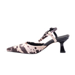 Zapatilla para dama marca Francis en color vaca. Este modelo de punta estilizada destaca por su tacón de 7.00 cm que proporciona una postura elegante y cómoda. El corte hecho en textil con vista vacuna ofrece una combinación perfecta entre estilo y durabilidad.
