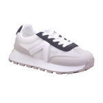 Tenis para dama marca Ronassi. en colores blanco/grey y negro/blanco. Son ideales para un look casual y confortable. Su suela de 3.5 cm brinda una mayor altura y su ajuste con agujetas garantiza un mejor calce. Su interior cómodo y su corte en textil malla con cortes en piel artificial ofrecen una combinación perfecta de estilo y comodidad. ¡Hazlos parte de tu outfit!