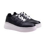Calzado para dama tipo tenis marca Lobo Solo en color negro. Este tenis combina funcionalidad y diseño urbano en una silueta versátil. Fabricado en piel vacuna negra con acabado texturizado, incorpora perforaciones en la puntera y los laterales que favorecen la ventilación, manteniendo el pie fresco durante el uso prolongado. El forro textil aporta ligereza y comodidad interior.