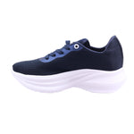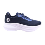 Tenis para dama marca Hispana en colores azul y negro. Con corte y forro textil, este modelo presenta una suela ligera de 5.5 cm que brinda amortiguación y soporte. El diseño incluye malla transpirable en tono azul marino, refuerzos sintéticos en el empeine y cierre con agujetas. La suela blanca con textura ofrece buen agarre, mientras el interior acolchado garantiza confort prolongado. Ideal para actividad física o uso casual con estilo dinámico.