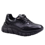 Tenis para dama marca Francis en color negro. Este modelo de zapatos cuenta con una altura de 5 centímetros, un corte con grabado y piel lisa, así como un ajuste en agujeta. El calzado perfecto para añadir un toque de elegancia y estilo a cualquier atuendo. Además, su diseño único proporciona comodidad y un ajuste perfecto para tus pies.