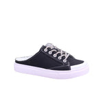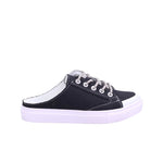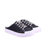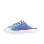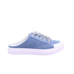 Tenis para dama en colores cielo y negro. Disfruta de la comodidad y estilo con nuestros tenis destalonados para dama. Su plataforma de 3.00 centímetros te brinda altura sin sacrificar comodidad. Además, su elegante acabado en mezclilla y agujetas tubulares cubiertas en pedrería te harán lucir a la moda en cualquier ocasión.
