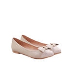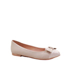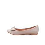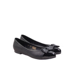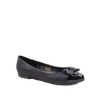 Balateria para dama de piso con moño delantero y punta redonda. Terminado en charol