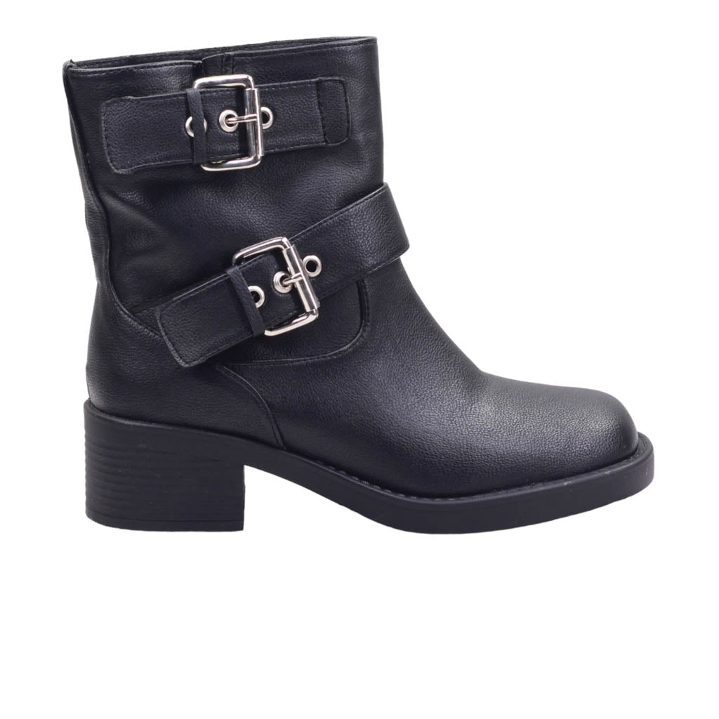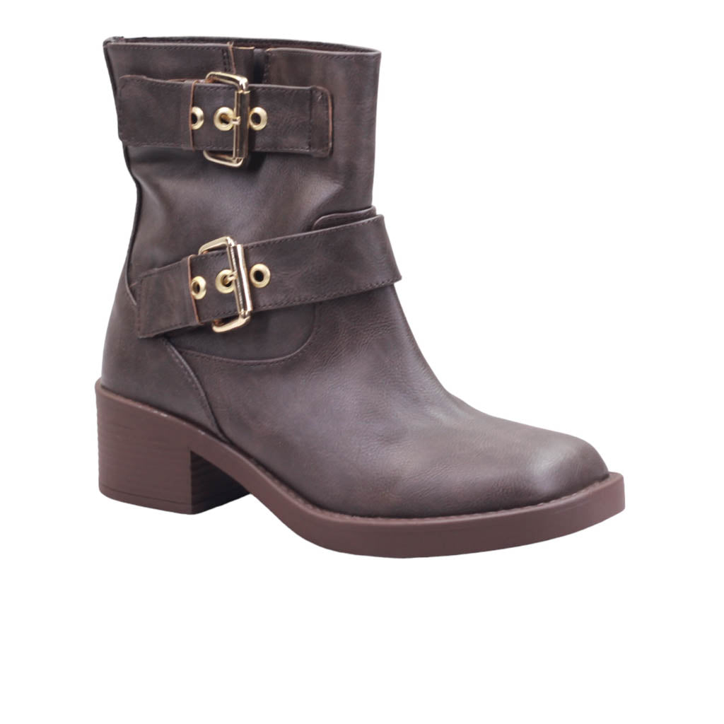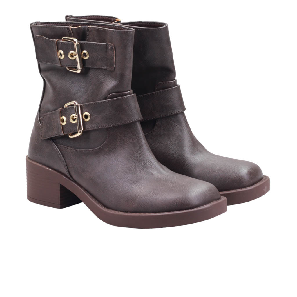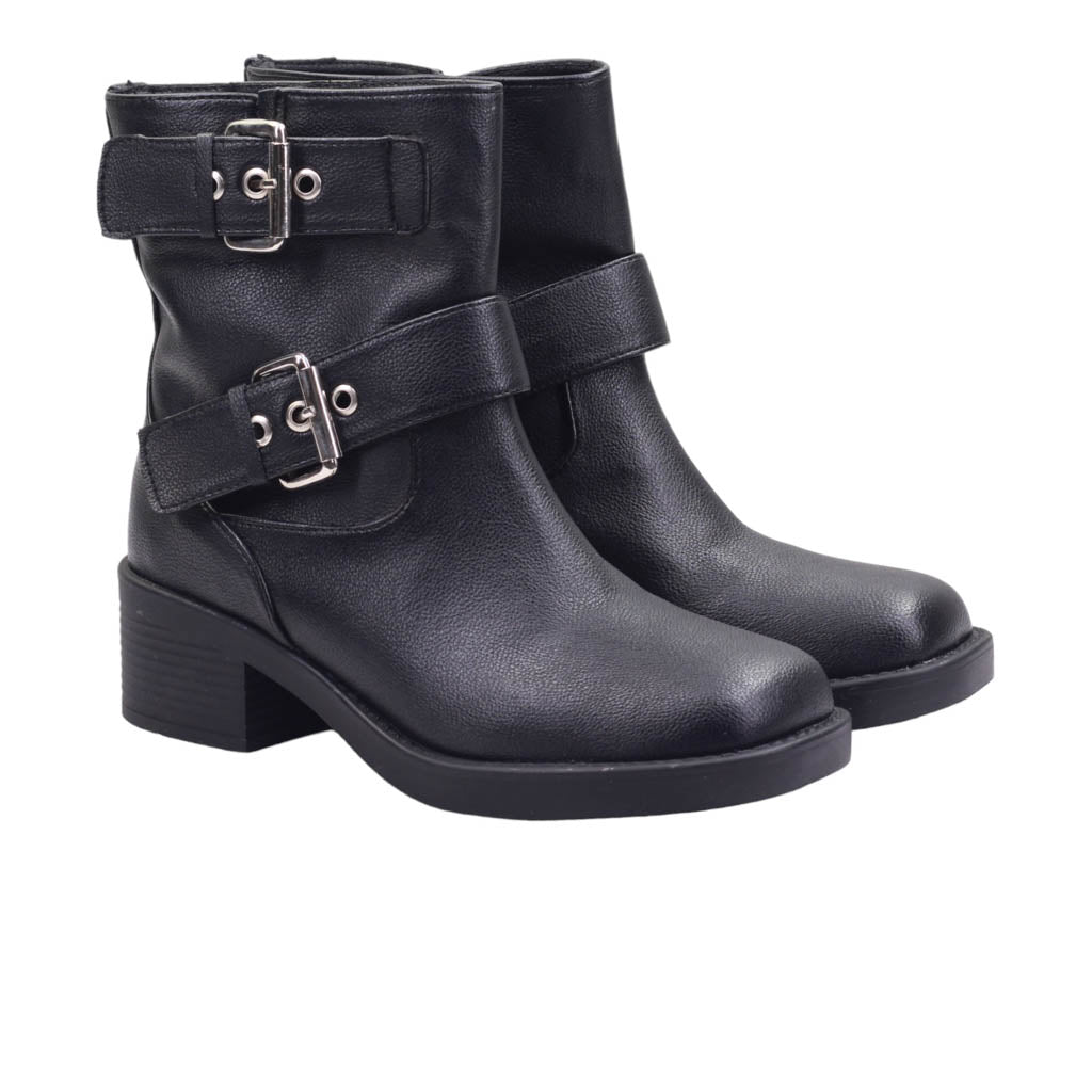 Bota para dama con doble tira con hebilla ene l tubo