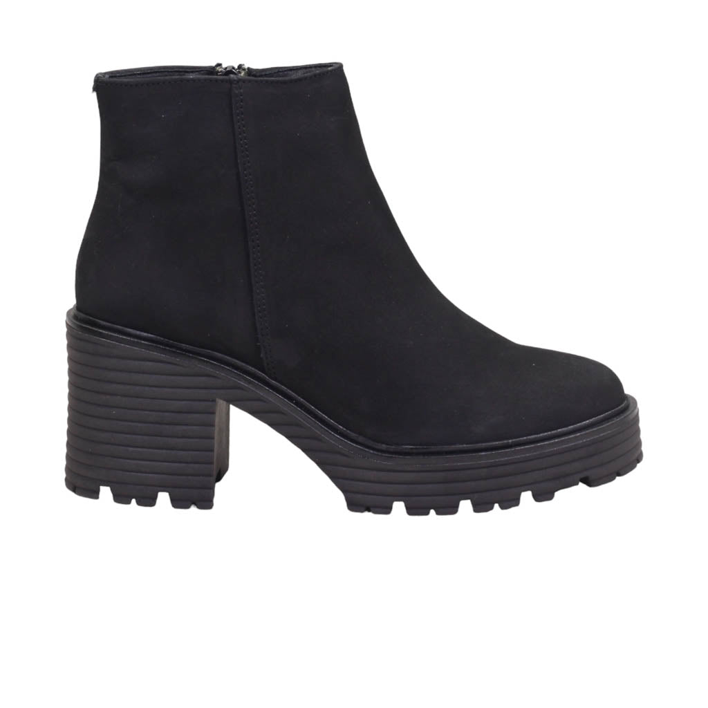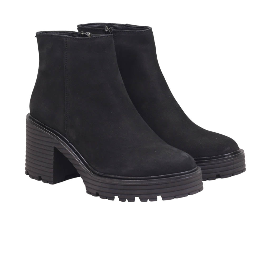 Botín casual para dama de tacón ancho y terminado en nubuck