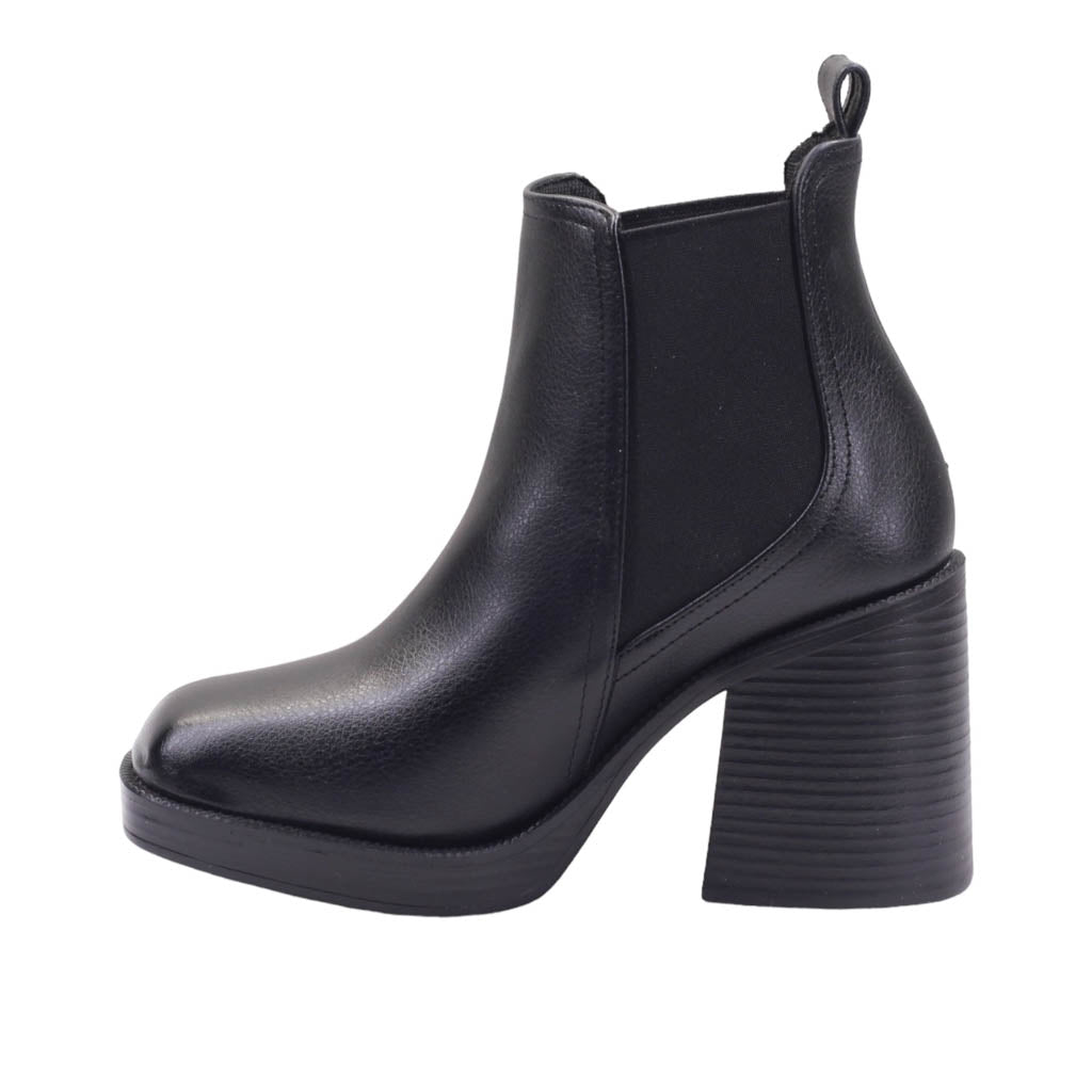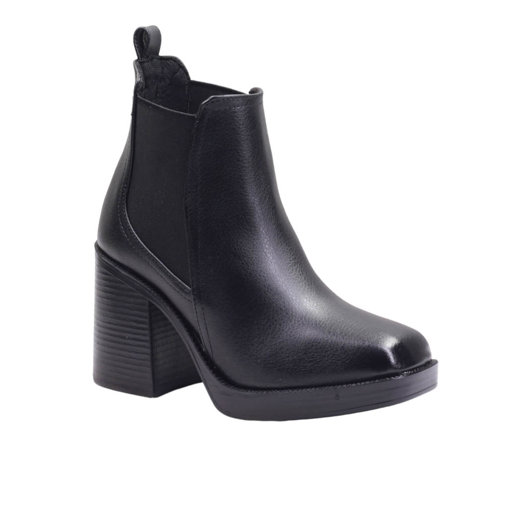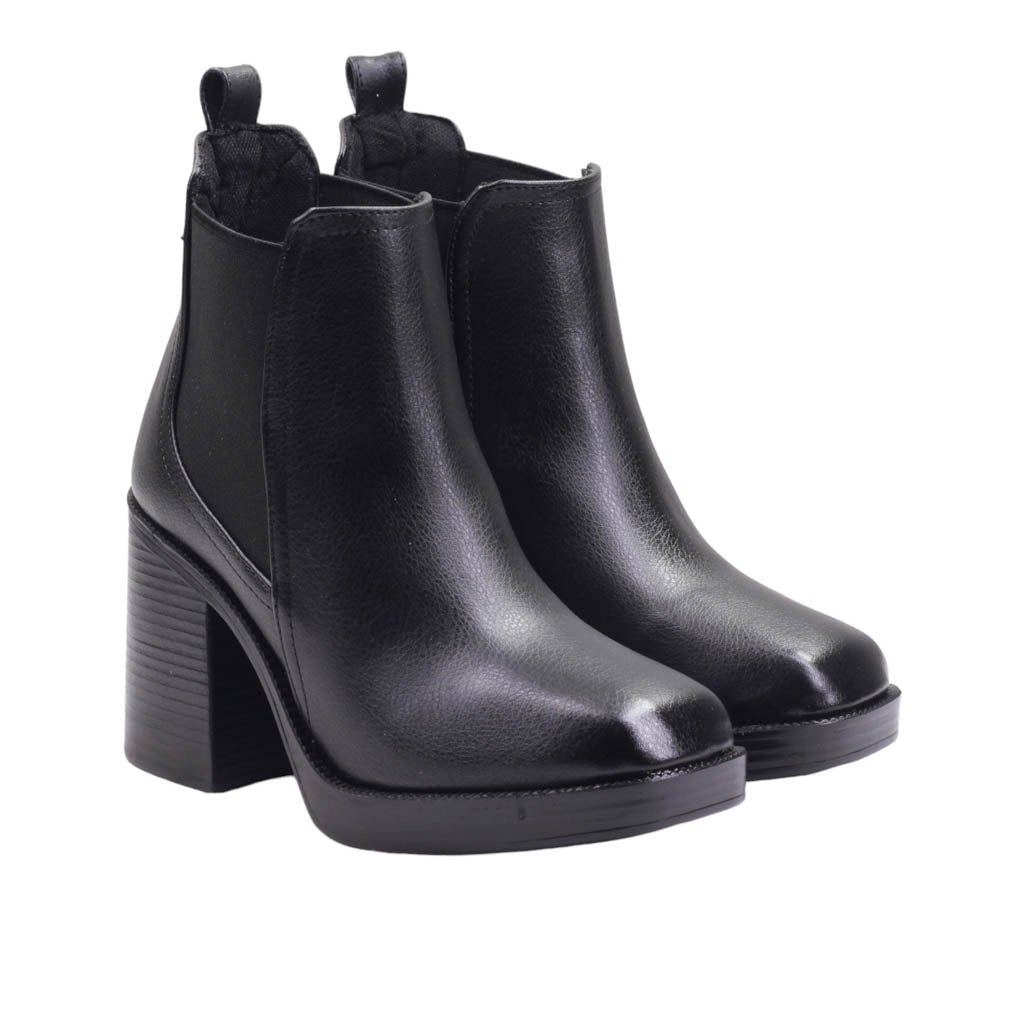 Botín para dama de tacón ancho y elástico lateral