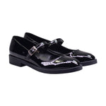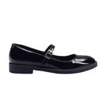Calzado para dama marca Zócalo en color negro charol. Este modelo presenta una punta redonda y está fabricado con piel artificial. Además, cuenta con ajuste en hebilla, lo que lo hace único. Disfruta de su comodidad y estilo en tus ocasiones especiales.