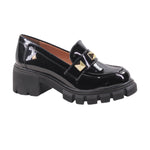 Plataforma para dama marca Salamandra en color negro charol. Originalidad y estilo para tu atuendo. Modelo super atractivo de suela ancha, consigue el look que te hará ver genial esta temporada. Se trata de un modelo atractivo a la vista con adorno de broche frontal. Además de fácil de combinar con tu guardarropa actual.