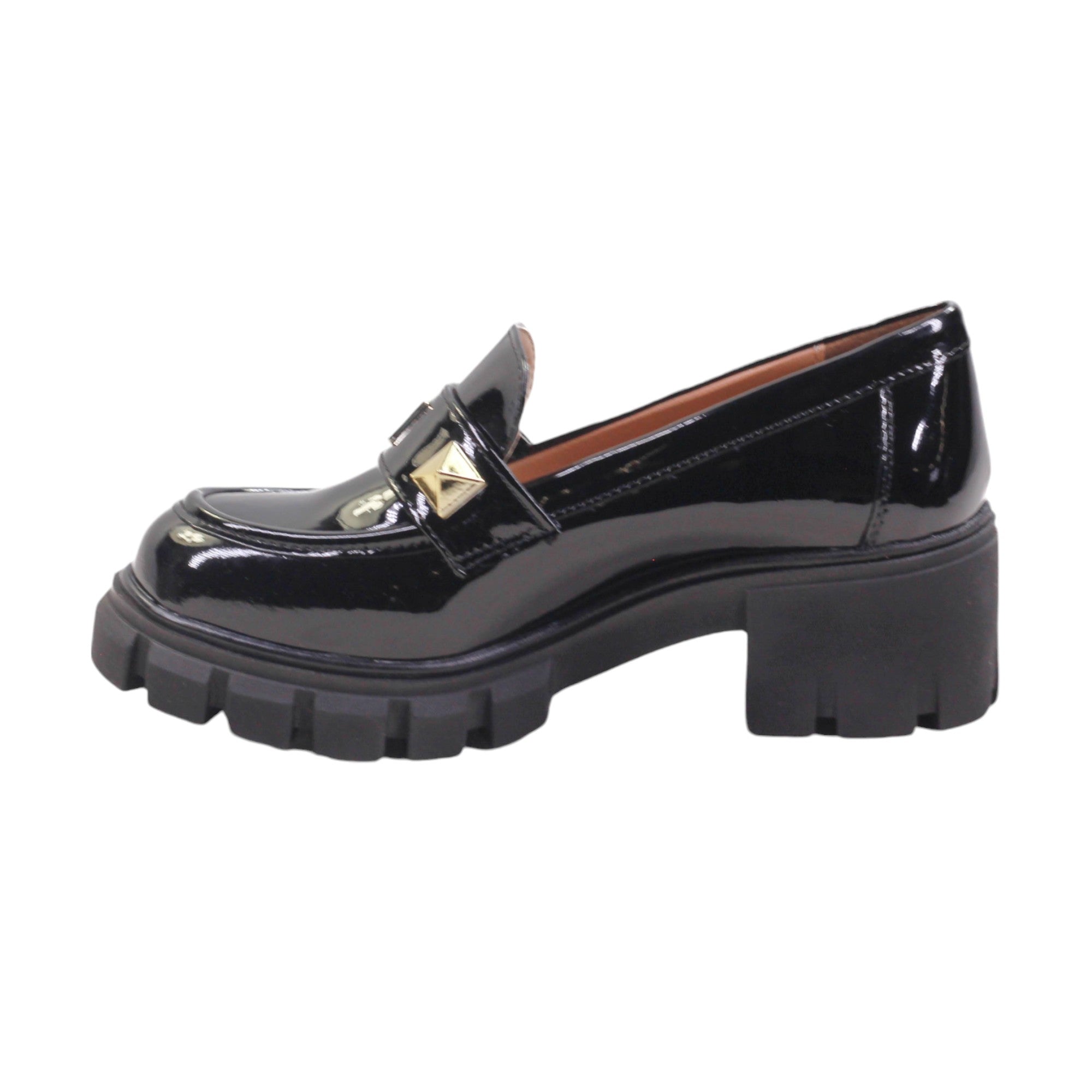 Plataforma para dama marca Salamandra en color negro charol. Originalidad y estilo para tu atuendo. Modelo super atractivo de suela ancha, consigue el look que te hará ver genial esta temporada. Se trata de un modelo atractivo a la vista con adorno de broche frontal. Además de fácil de combinar con tu guardarropa actual.