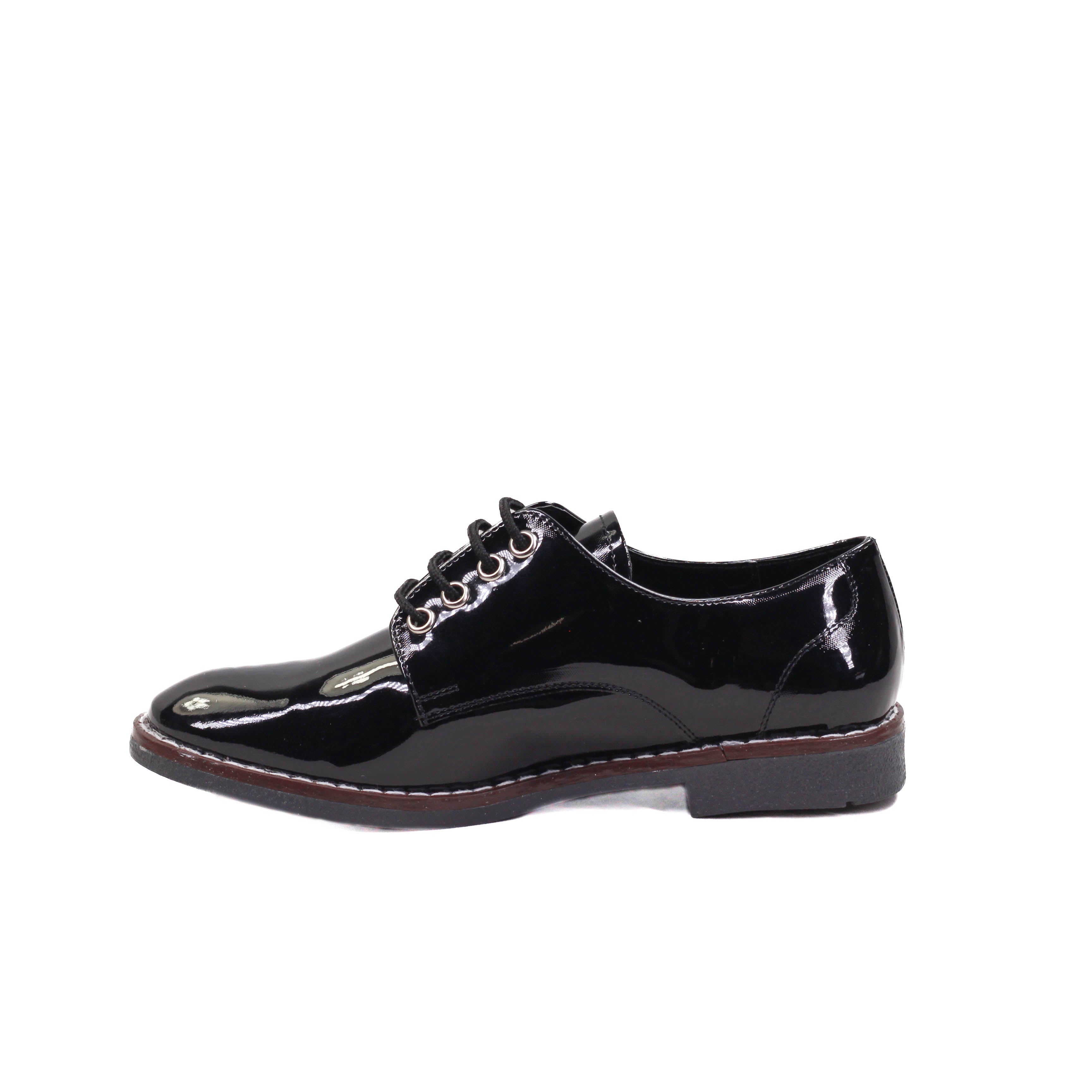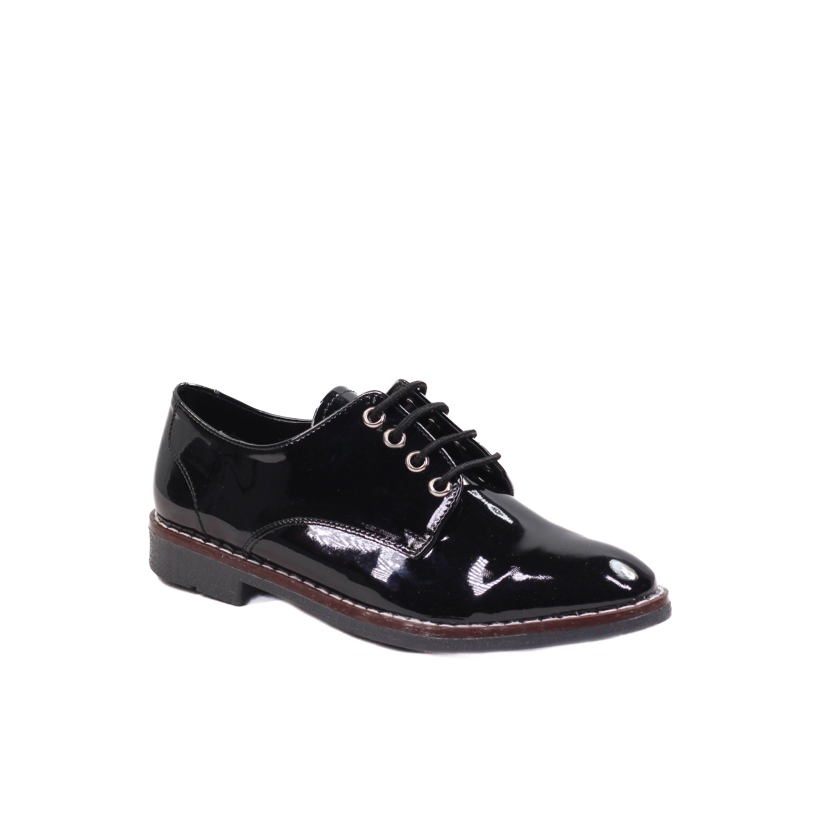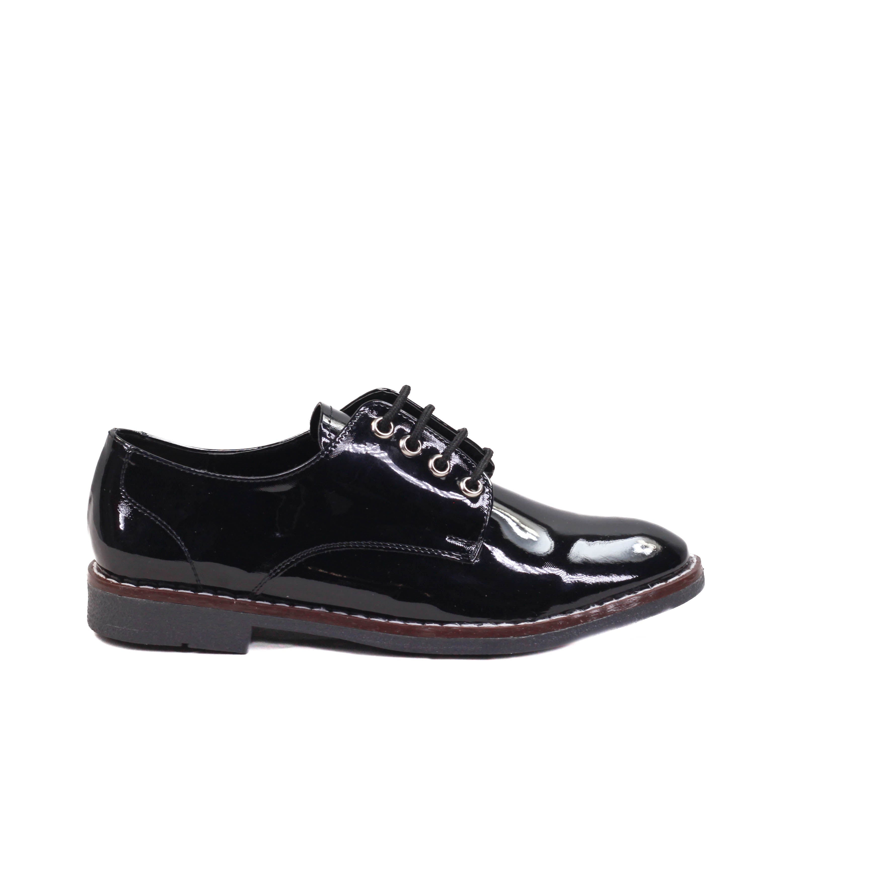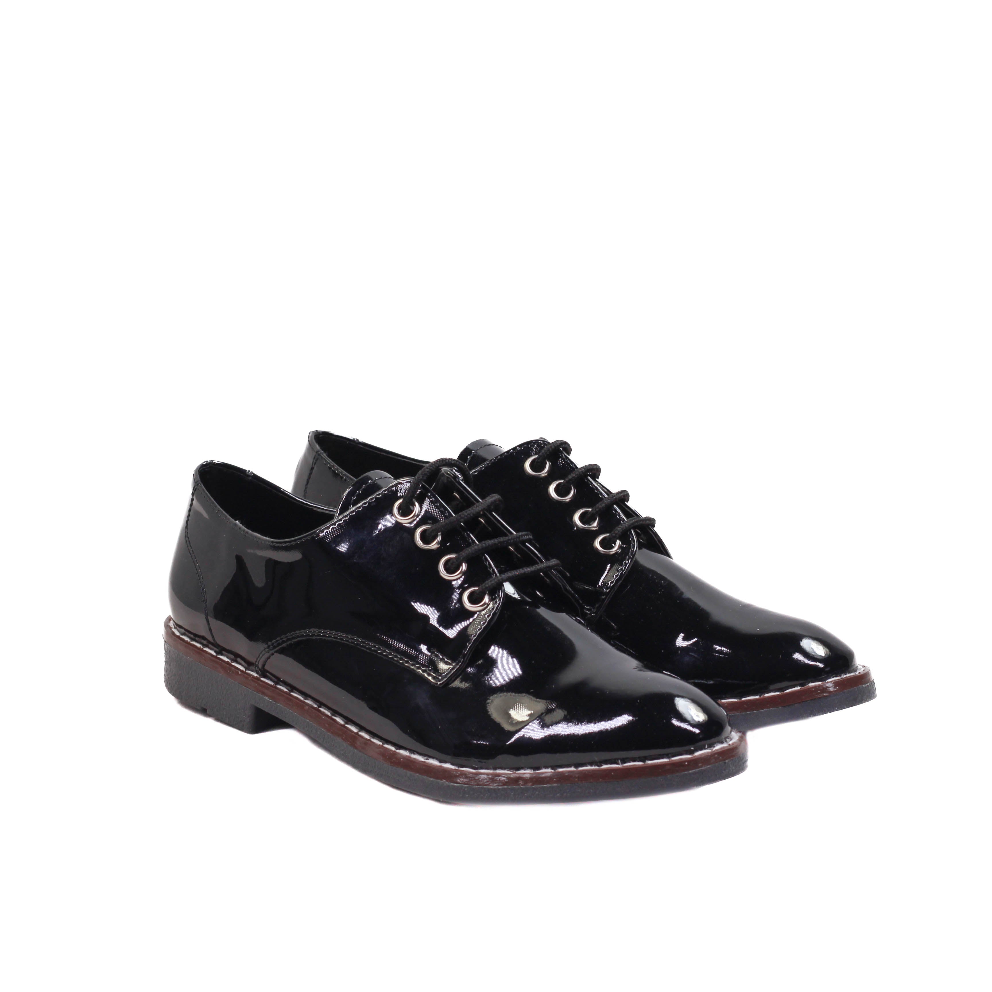 Calzado para dama de terminado en charol y ajuste con agujetas