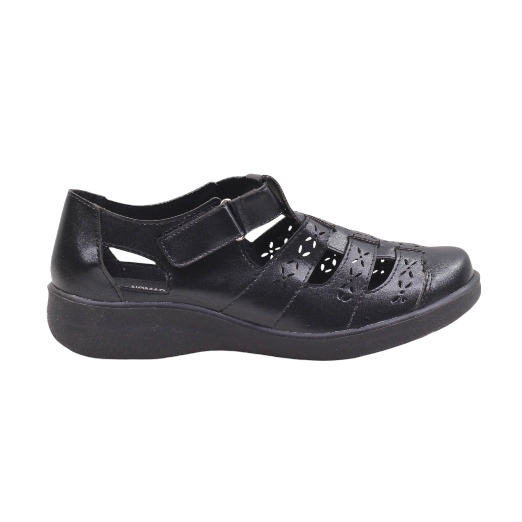 Calzado tipo huarache marca Nómadas en llamativos colores negro y tan. Este modelo no solo te cautivará con su atractivo diseño, sino que también destacan por su comodidad excepcional y amplio espacio interior.