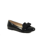 Calzado para dama marca Zócalo en colores Negro charol. Diseño moderno y cómodo que cuenta con moño grande de frente. Bailarina de punta redonda. Este modelo te permite la comodidad que necesitas en un calzado.