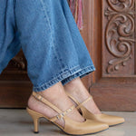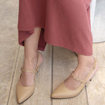 Camina con seguridad y elegancia, gracias a un diseño que estiliza sin sacrificar confort. Zapatilla de piel lisa con tacón de 6 cm, tira delgada con hebilla y corte destalonado para un ajuste moderno y sofisticado.