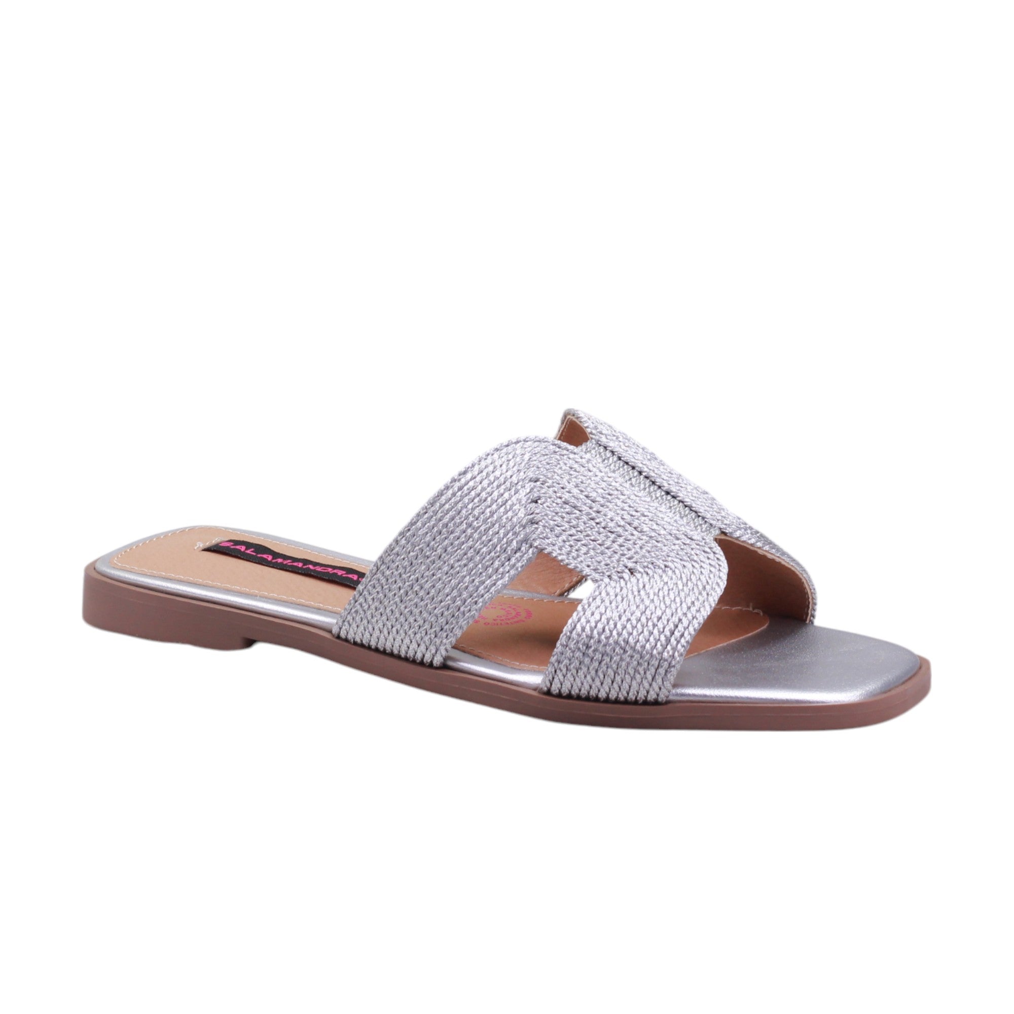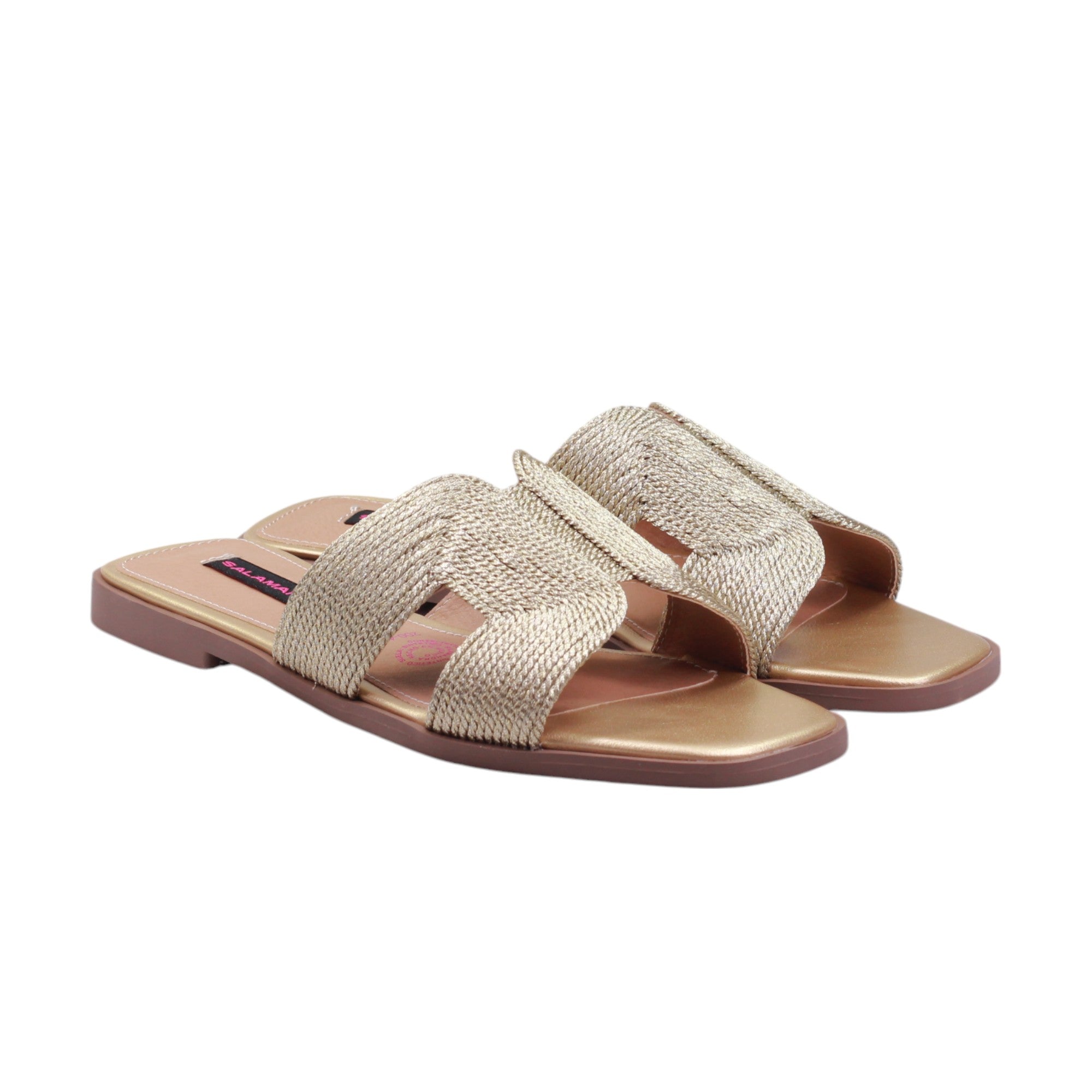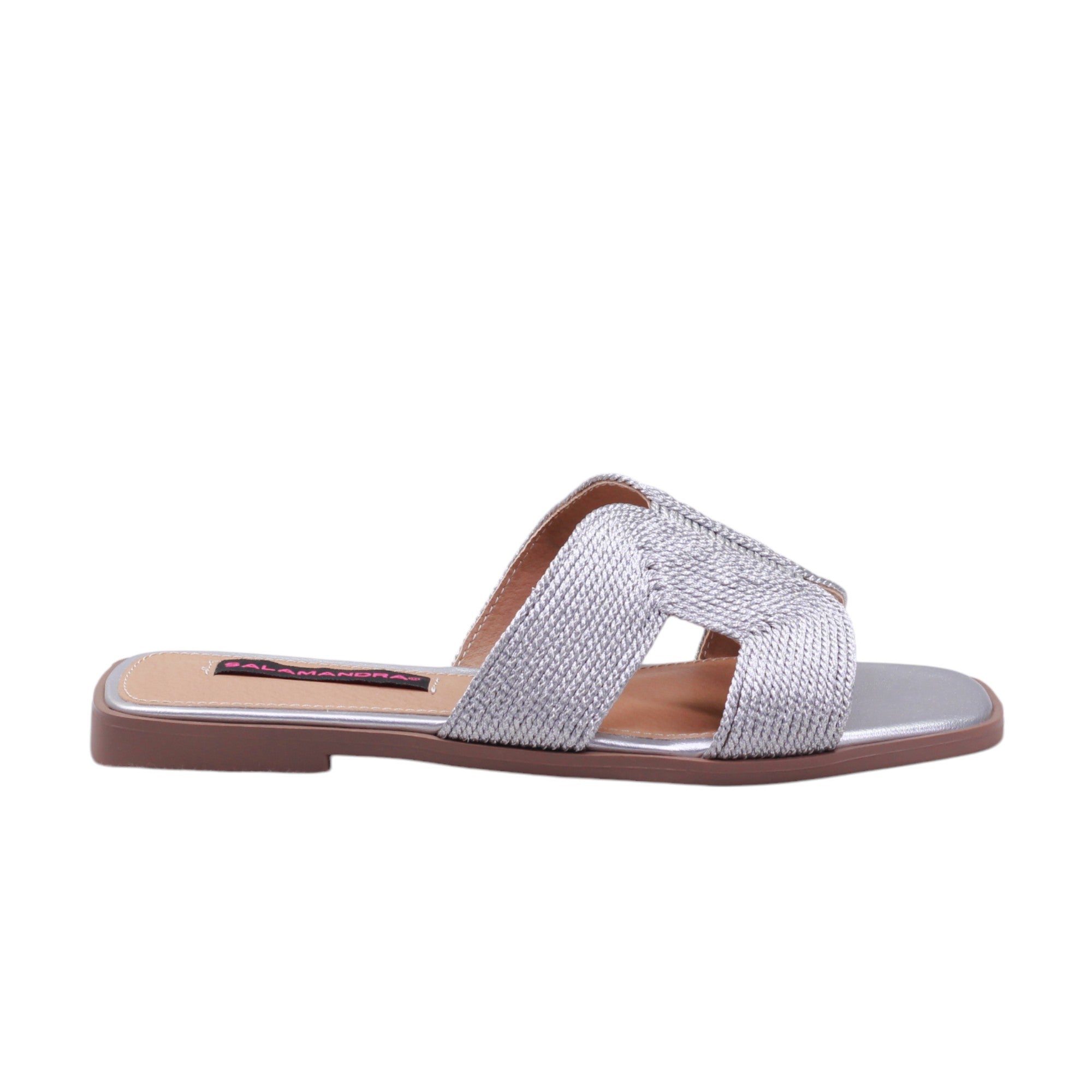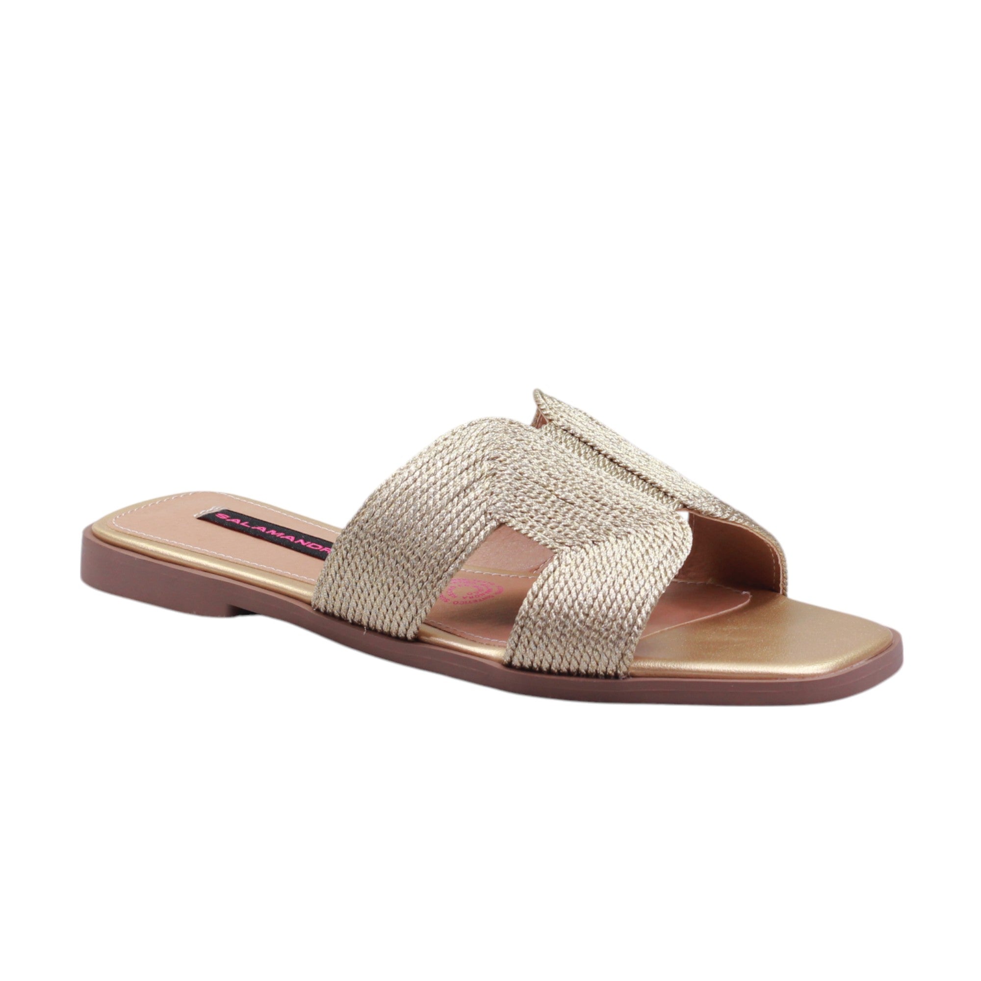 Sandalia para dama marca Salamandra en colores oro y plata. Este modelo cuenta con un diseño de tacón bajo que brinda comodidad mientras caminas. El corte con vista en tejido le da un toque elegante y la plantilla cómoda te permite estar de pie por más tiempo. Con esta sandalia, estarás cómoda al mismo tiempo.