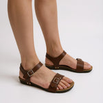 Sandalia para dama marca Nómadas en color tan. Modelo de plataforma tipo corcho. Es una sandalia de Confort y plantilla ergonómica que te proporciona una altura de 2,00 cm con un calce perfecto y te brindará comodidad y estilo en cada paso.