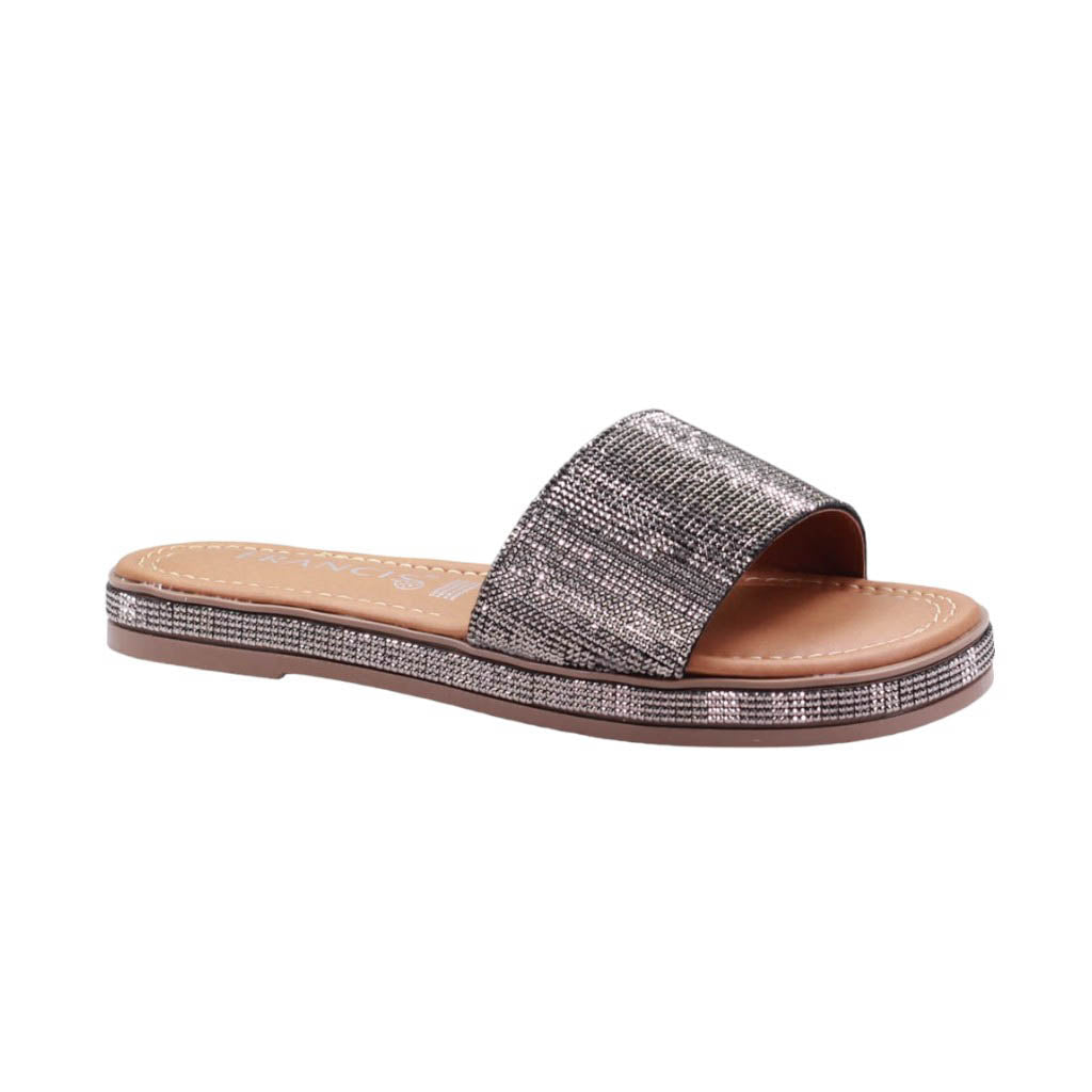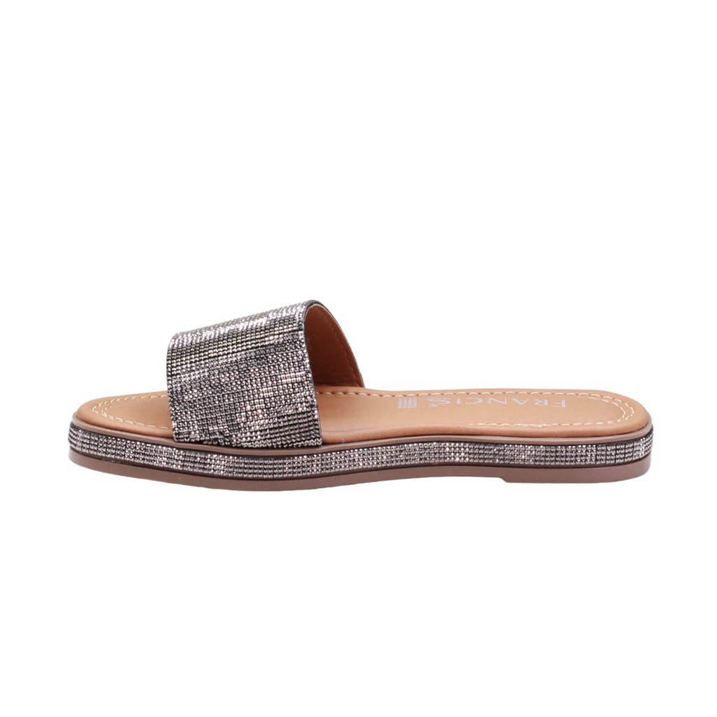 Sandalia para dama marca Francis en color inox. Descubre el estilo y comodidad con nuestro zapato de pedrería. Su corte y suela tienen un diseño único que te hará destacar, mientras que su plantilla de confort te brindará una sensación de bienestar todo el día. ¡Haz que tus pies luzcan elegantes y relajados con este modelo exclusivo! ¡Ordena ahora!