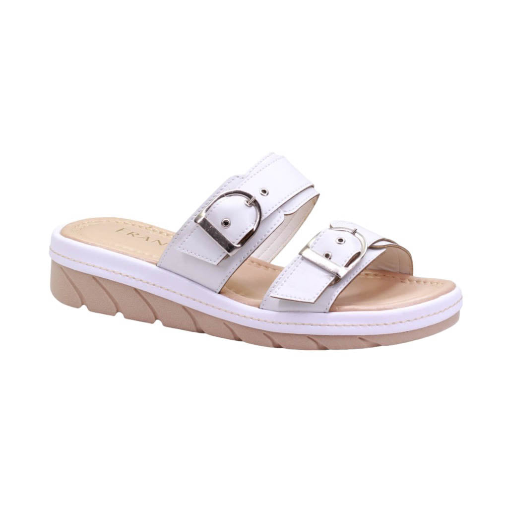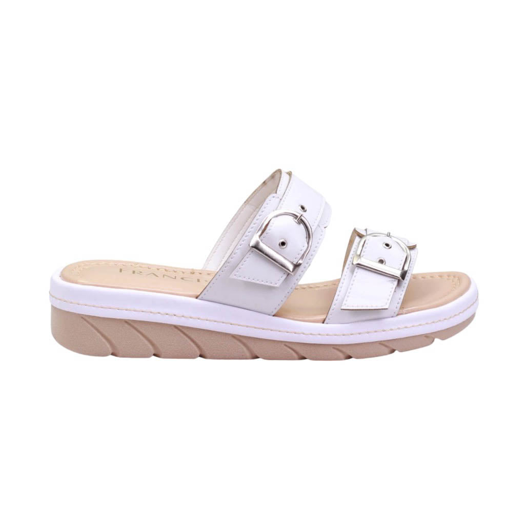 Sandalia para dama marca Francis en colores blanco y camel. Modelo que cuenta con plantilla de confort que brinda un soporte excepcional gracias a su diseño de doble tira con hebilla. Su altura de 3.5 centímetros asegura una comodidad adicional para tus pies. ¡Experimenta un ajuste perfecto y una sensación de bienestar todo el día!
