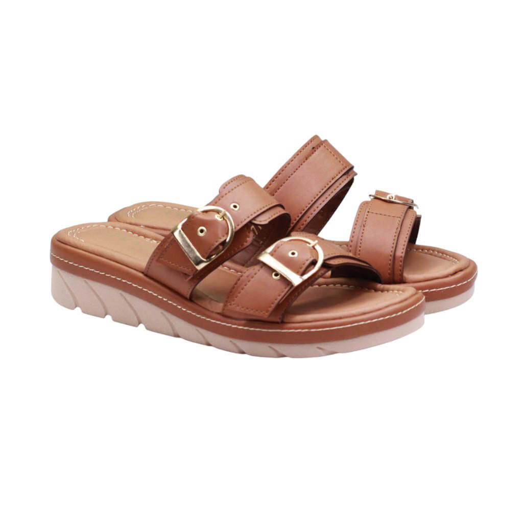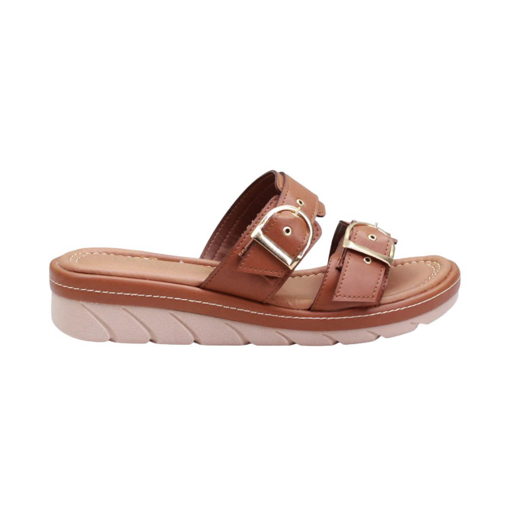 Sandalia para dama de plantilla de confort y doble tira con hebilla